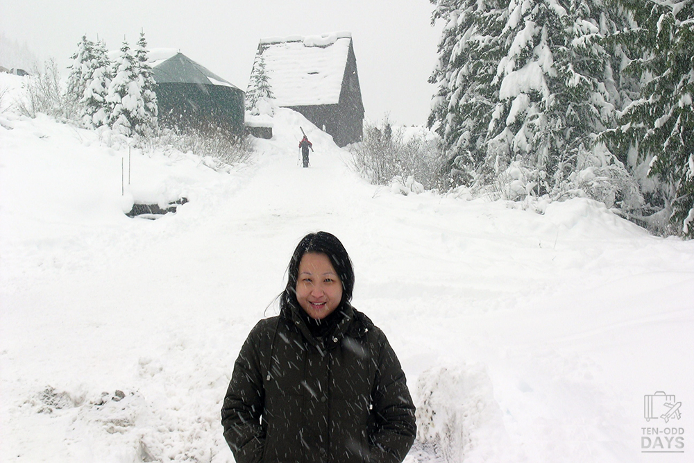 The drive got progressively more interesting as we drove up to the resort. Somewhere along the way we also had to stop to put the snow chains on the tyres. I’d seen snow but to see the alpine trees get covered in more and more snow as the altitude increased was such a novel experience. At some point, I even wound down the window to feel snow drifting onto my face, much to the chagrin of my companions (they didn’t appreciate the cold).
