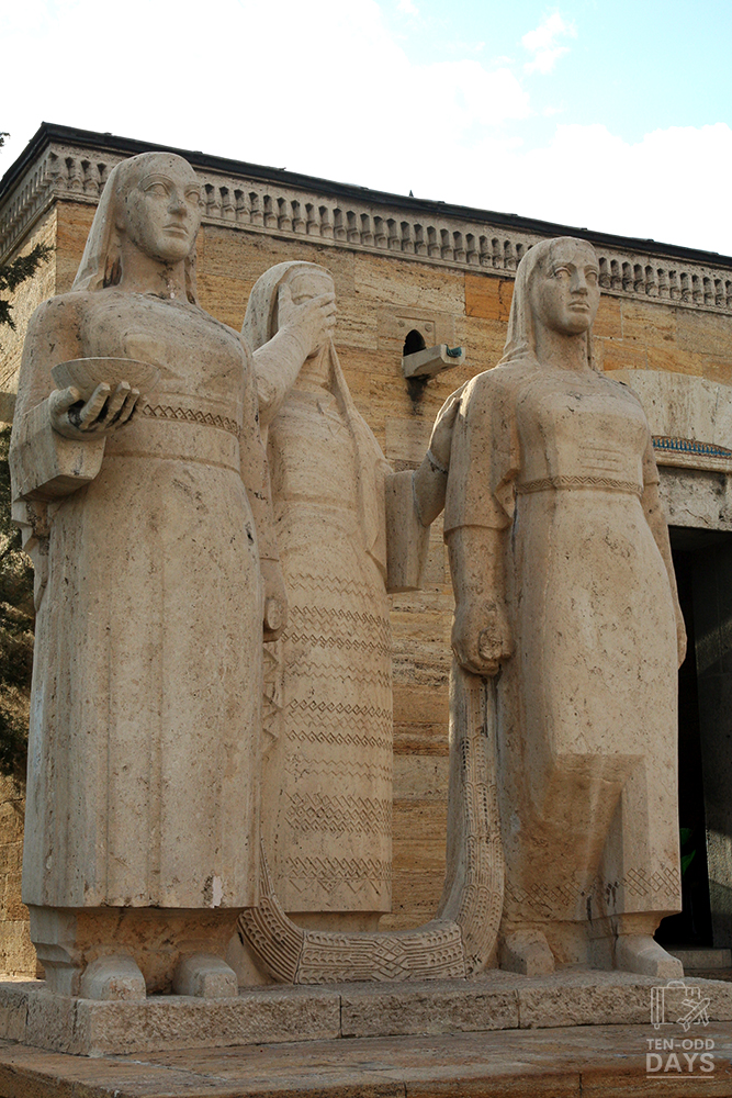 We entered the Atatürk mausoleum grounds via the entrance of the Road of Lions, and were introduced to the two sets of sculptures bearing great significance as they represent the population. The group of women sculpture ‘represents the Turkish women’s pride, solemnity and determination, even in the deepest grief of losing Atatürk‘ and ‘By the grievous expressions in the faces of all three statues, solemnity and power of will proper to Turkish Nation are expressed‘ in the group of men sculpture.