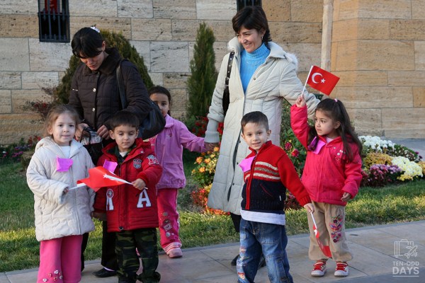 While waiting for our transport toward the end of our visit, a group of young Turkish children walked by, waving their flags enthusiastically. We found them cute as much as they found us… strange? 😆