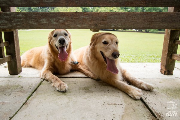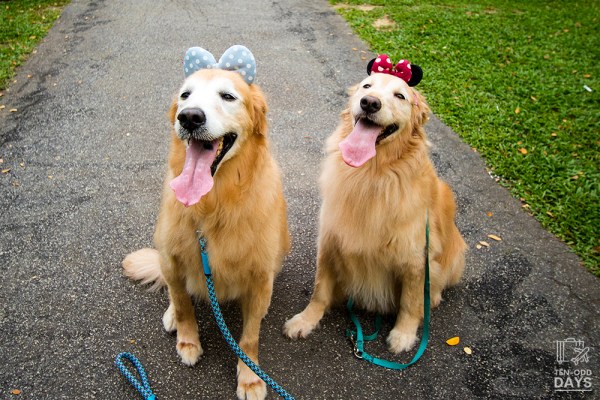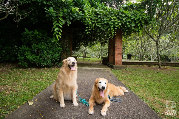 We found a bench nearby for the girls to take a rest while the mister walked back to the car to fetch their water bowl and bottled water. The girls took the opportunity to indulge in their favourite past-time – people watching. Since they were too tired to stray off, I wasn’t watching them too closely, allowing them to explore around the bench freely. Both decided that it was a good idea to nestle under the bench together. These girls… sometimes I simply cannot fathom what go through their minds. 😆