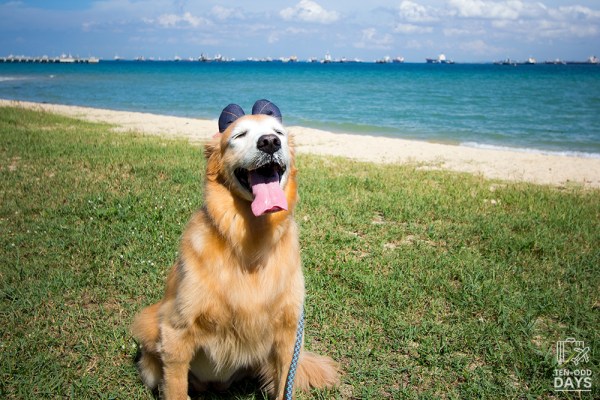 We finally made it to Bedok Jetty, a fishing jetty where fishing is allowed. We didn’t walk the whole length of it since I didn’t want Belle to get too near the fishermen with their fresh catch, hooks, lines and what-nots. Not safe for an inquisitive dog, if you know what I mean. Belle was happy to pause for a photo break. And as always, a ready smile for me.