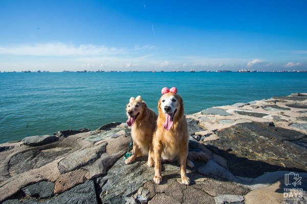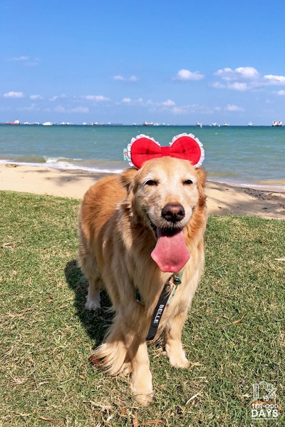 And she felt adventurous enough to jump up to a narrow breakwater. It was a picture-perfect moment but I was also fearing that she might slip hence my tight grip on her leash while I photographed her. This old girl still possesses some of her taste for adventure yet! 😀