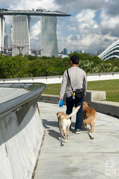 In comparison to their daddy, Belle and Cassie spend considerably more time with me since I work shorter hours these days due to a slower market. That doesn’t stop them from wanting to be around the mister more, especially on walks and occasional excursions to parks around Singapore. I reckon my slower walking pace and obsession with taking pictures didn’t quite suite their desire to dash ahead. 😕