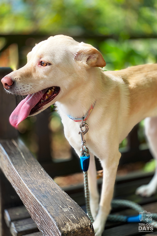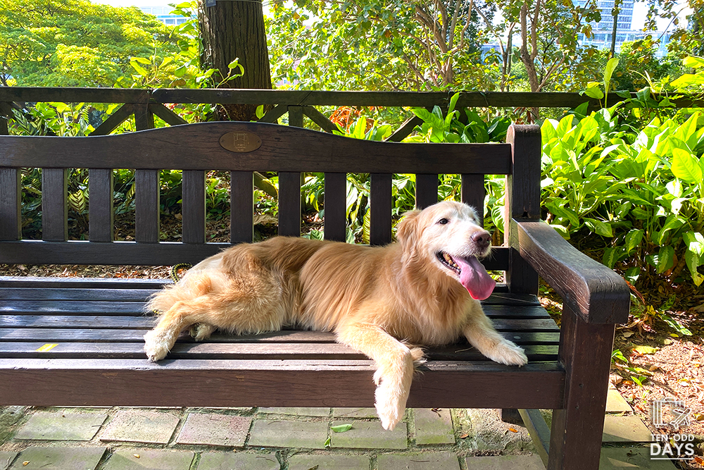 And at sighting a bench, the girls immediately jumped up without much coaxing, just to rest a bit in the shade. We let them be, to let them cool down a bit. Heatstroke in dogs is a very real problem that is not taken too seriously here in Singapore, but recently a dog here passed away from heatstroke, simply by walking in a park. It really hit home, so we were careful not to let that happen.