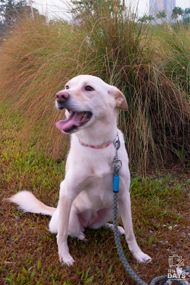 Cassie was a full-fledged busybody on the walk. A golden retriever walked by with its owner and she was curiously following its path with her eyes. How adorable! I bet if we had let her off-leash, she would have run off to make friends with that golden retriever. Reminds me of how her trainer told us this girl would easily be the life of a party given how she wanted to be friends with everyone in her obedience class. And back then she was only a 4-month old puppy! 😛