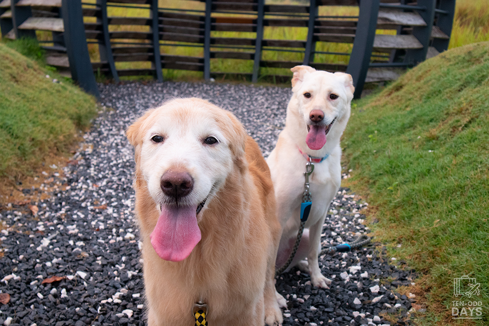 That morning, the girls have experienced walking on all sorts of terrain: concrete, grass, gravel, mud and sand. Belle and Cassie are generally very fastidious about cleanliness and they are not so used to walking on gravel. Both girls challenged the terrain with much gutso, to my surprise.